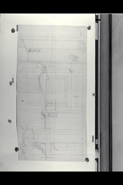 Alzato e sezione di un dettaglio della cornice nella sede di Milano della Banca Commerciale Italiana in piazza della Scala e via Manzoni. Alzato e sezione di un dettaglio della cornice nella sede di Milano della Banca Commerciale Italiana in piazza della Scala e via Manzoni