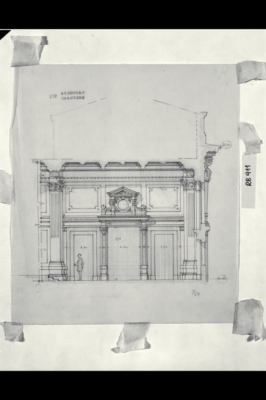 Sezione di una sala interna nella sede centrale di Milano della Banca Commerciale Italiana in piazza della Scala e via Santa Margherita. Sezione di una sala interna nella sede centrale di Milano della Banca Commerciale Italiana in piazza della Scala e via Santa Margherita