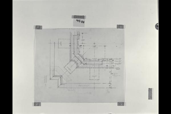 Sezione orizzontale in corrispondenza della gronda nella sede centrale di Milano della Banca Commerciale Italiana in piazza della Scala e via Santa Margherita. Sezione orizzontale in corrispondenza della gronda nella sede centrale di Milano della Banca Commerciale Italiana in piazza della Scala e via Santa Margherita