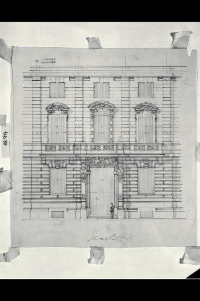 Prospetto parziale della sede di Milano della Banca Commerciale Italiana in piazza della Scala. Prospetto parziale della sede di Milano della Banca Commerciale Italiana in piazza della Scala