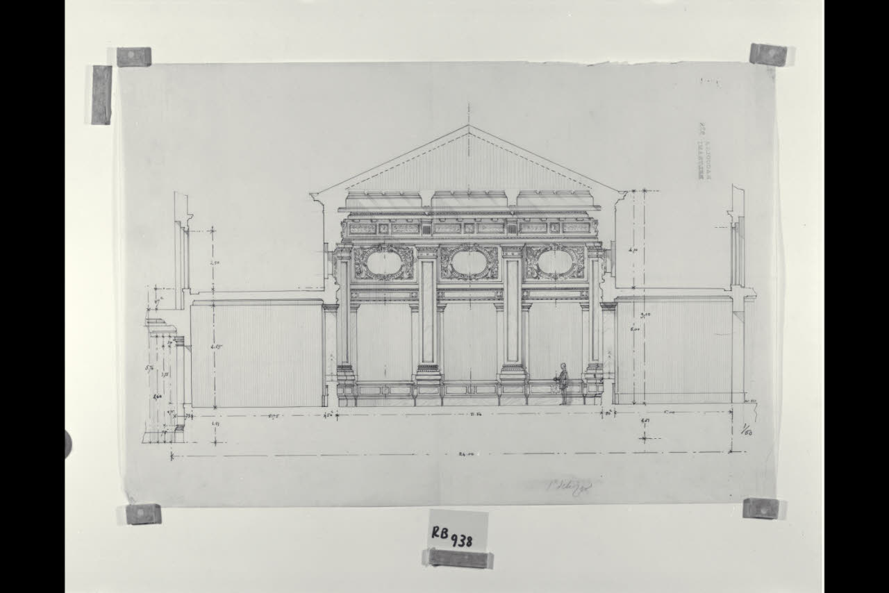 Sezione trasversale della sala delle adunanze nella sede di Milano della Banca Commerciale Italiana in piazza della Scala. Sezione trasversale della sala delle adunanze nella sede di Milano della Banca Commerciale Italiana in piazza della Scala