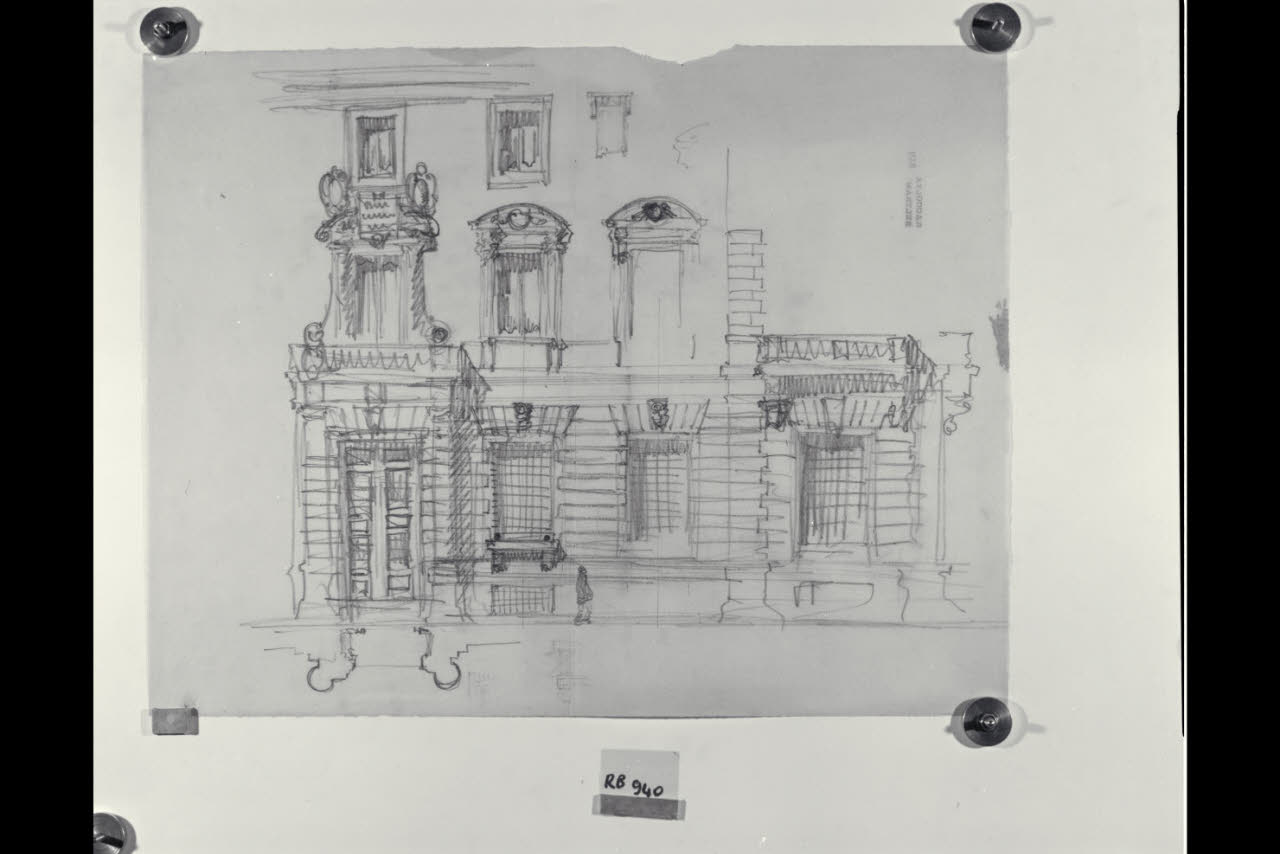 Schizzo di prospetto della sede centrale di Milano della Banca Commerciale Italiana in piazza della Scala e via Santa Margherita. Schizzo di prospetto della sede centrale di Milano della Banca Commerciale Italiana in piazza della Scala e via Santa Margherita