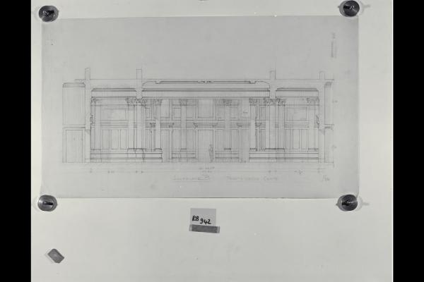 Parete verso la corte della sala delle adunanze nella sede centrale di Milano della Banca Commerciale Italiana in piazza della Scala e via Santa Margherita. Parete verso la corte della sala delle adunanze nella sede centrale di Milano della Banca Commerciale Italiana in piazza della Scala e via Santa Margherita