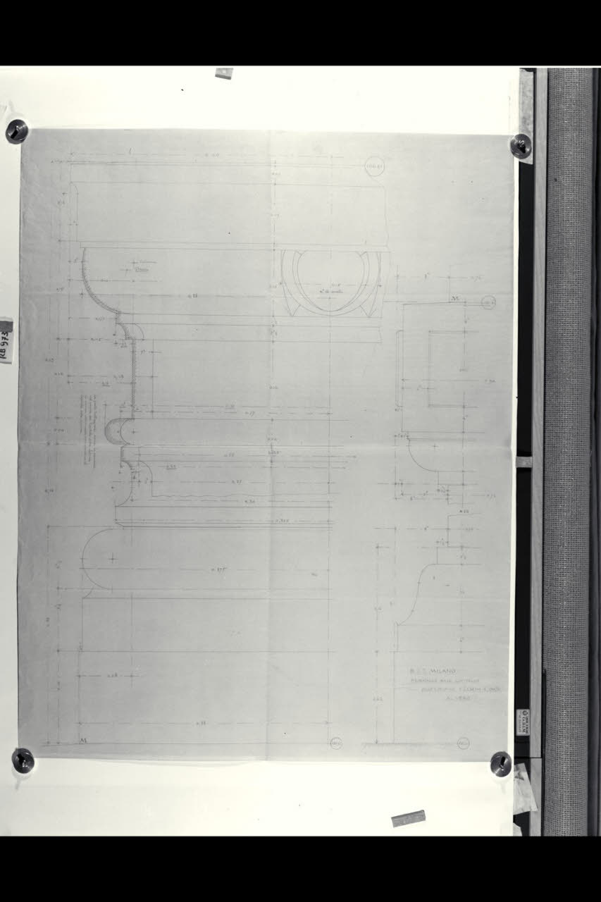 Sezioni del piedistallo, della base e del capitello delle colonne e delle lesene presenti nella corte della sede centrale di Milano della Banca Commerciale Italiana in piazza della Scala e via Santa Margherita. Sezioni del piedistallo, della base e del capitello delle colonne e delle lesene presenti nella corte della sede centrale di Milano della Banca Commerciale Italiana in piazza della Scala e via Santa Margherita