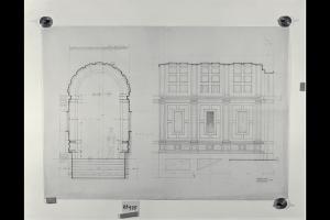 Sezione longitudinale e trasversale di un androne nella sede centrale di Milano della Banca Commerciale Italiana in piazza della Scala e via Santa Margherita. Sezione longitudinale e trasversale di un androne nella sede centrale di Milano della Banca Commerciale Italiana in piazza della Scala e via Santa Margherita