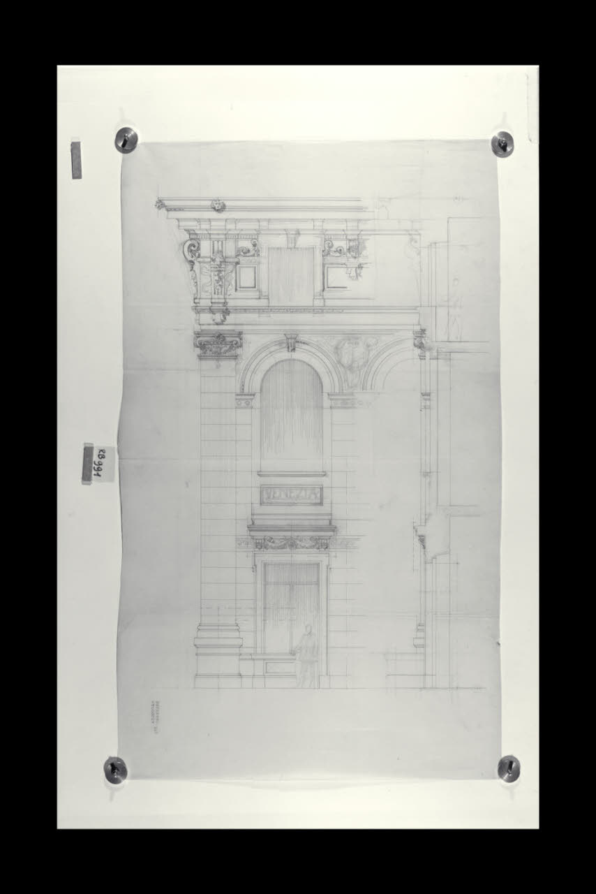 Alzato e sezione di un prospetto nella sede di Milano della Banca Commerciale Italiana in piazza della Scala e via Manzoni. Alzato e sezione di un prospetto nella sede di Milano della Banca Commerciale Italiana in piazza della Scala e via Manzoni