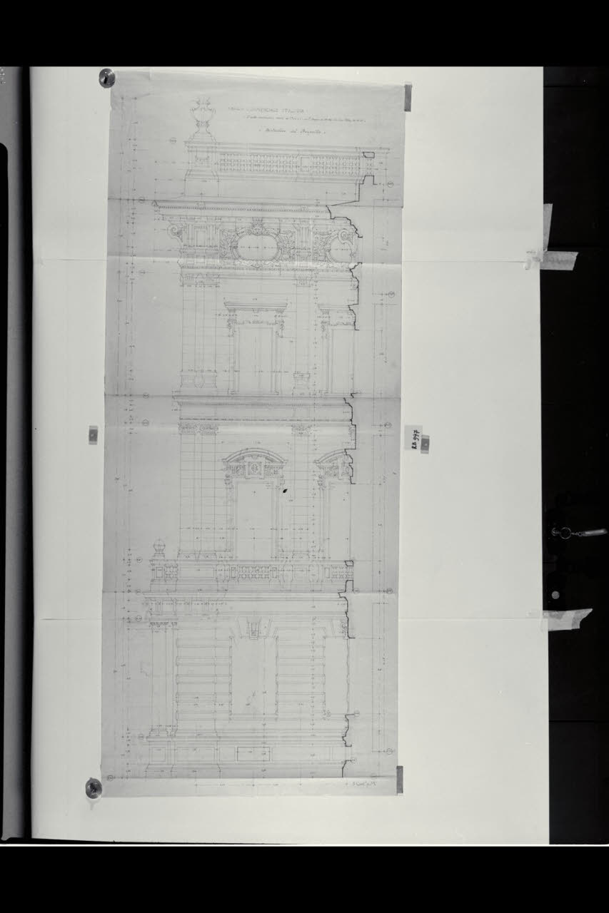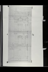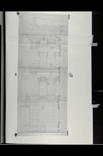 Alzato e sezione del prospetto verso via Margherita della sede centrale di Milano della Banca Commerciale Italiana in piazza della Scala e via Santa Margherita. Alzato e sezione del prospetto verso via Margherita della sede centrale di Milano della Banca Commerciale Italiana in piazza della Scala e via Santa Margherita