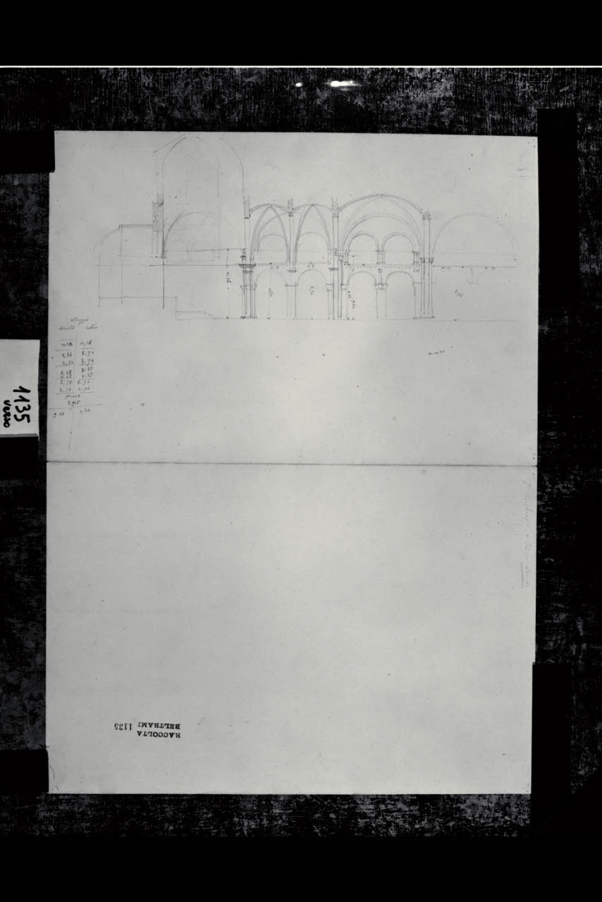Sezione longitudinale sulla seconda e terza campata verso la navata destra della Basilica di Sant'Ambrogio a Milano
