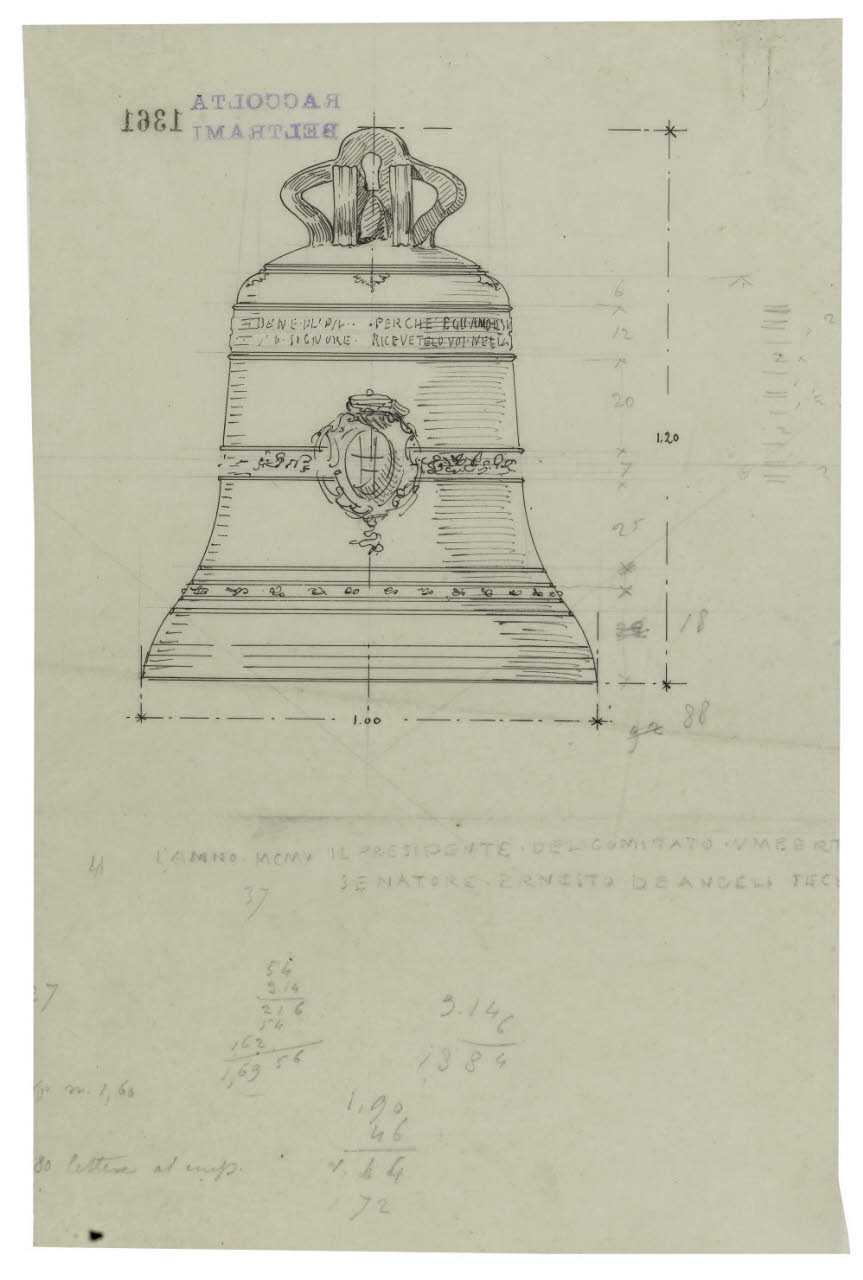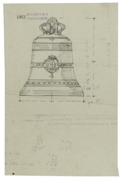 Milano, Castello Sforzesco: Prospetto della campana per la Torre Umberto I