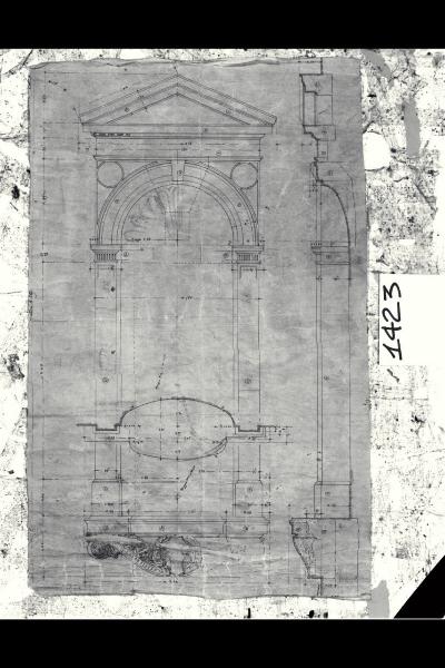 Prospetto e sezione dell’edicola della statua di S. Ambrogio del Castello Sforzesco di Milano. Prospetto e sezione dell’edicola della statua di S. Ambrogio del Castello Sforzesco di Milano