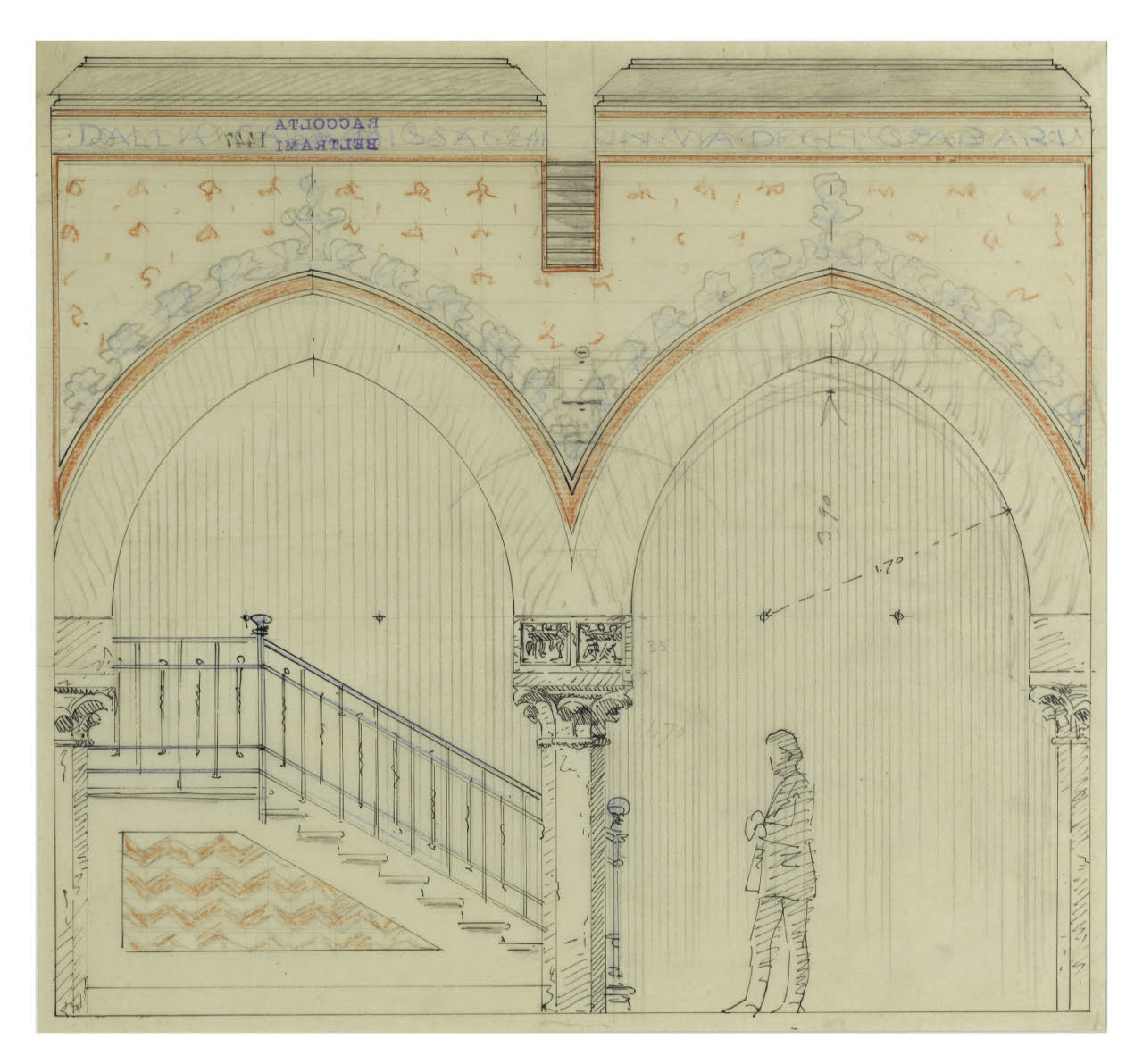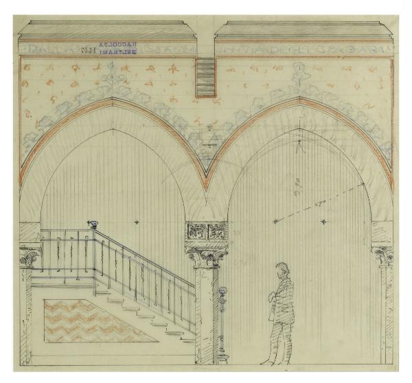 Prospetto della scala dei Missaglia nella cortina del Castello Sforzesco di Milano verso la città