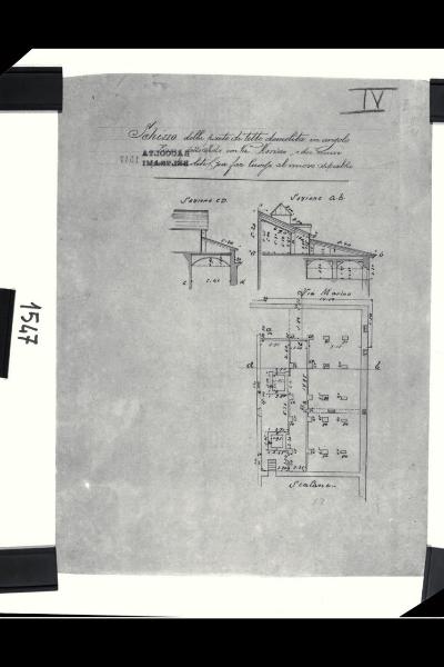 Milano, Palazzo Marino, schizzo della parte di tetto demolita in angolo Piazza della Scala con Via Marino, e dei muri pur demoliti per far luogo al nuovo sopralzo. Milano, Palazzo Marino. Schizzo della parte di tetto demolita in angolo Piazza della Scala con Via Marino, e dei muri pur demoliti per far luogo al nuovo sopralzo