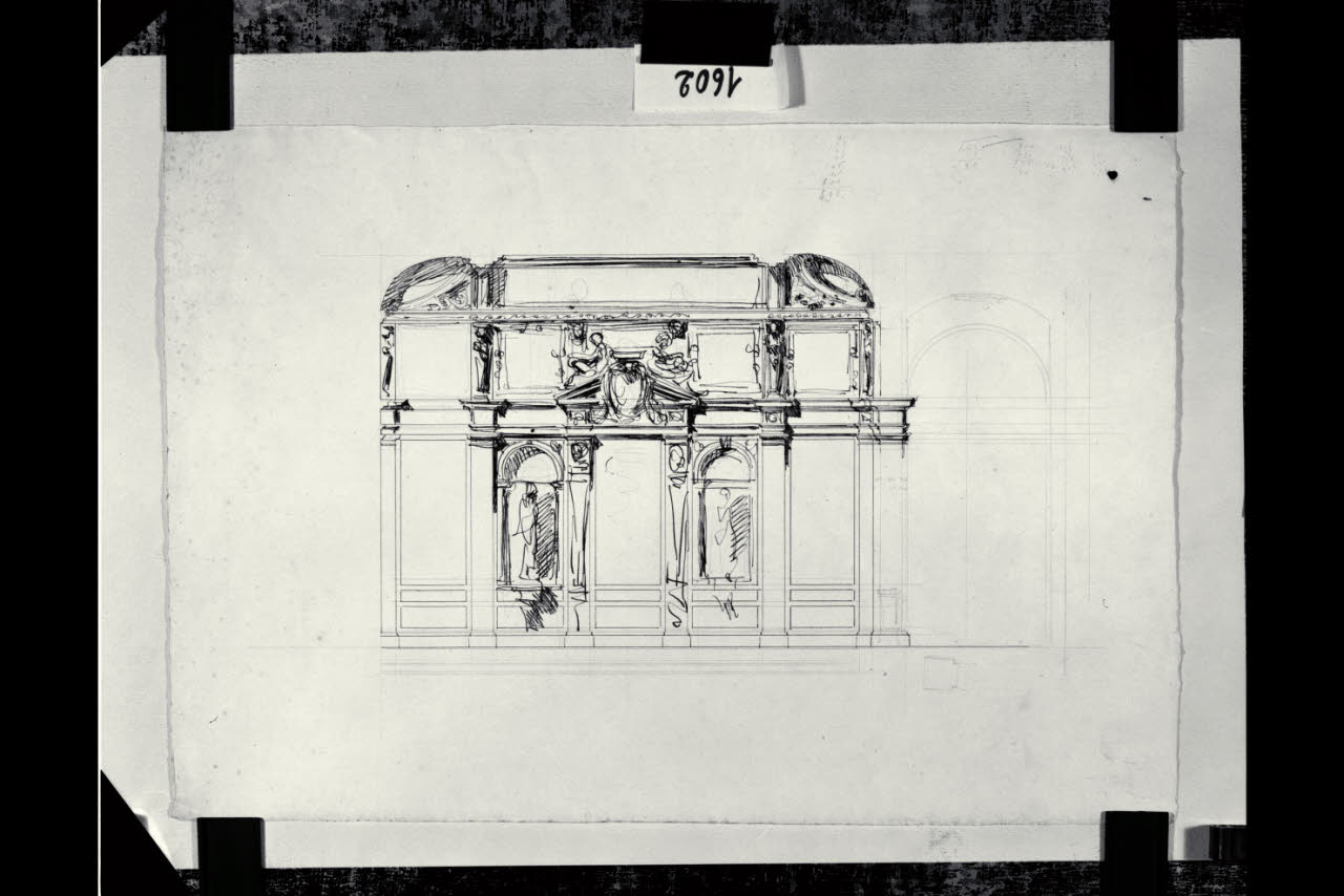 Milano, Palazzo Marino: sezione longitudinale di una delle sale interne. Milano, Palazzo Marino. Una sala interna. Sezione longitudinale