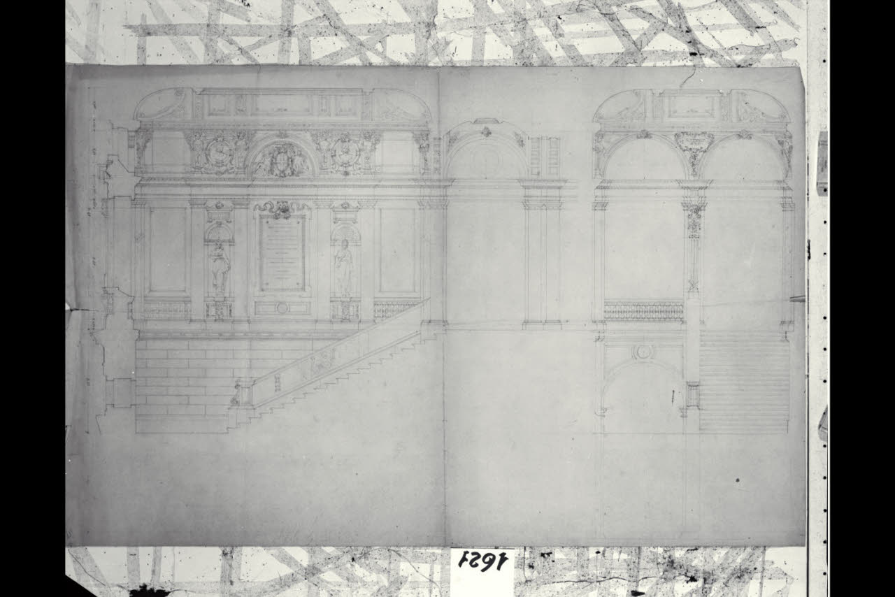 Milano, Palazzo Marino: sezione longitudinale dello scalone. Milano, Palazzo Marino. Scalone. Sezione longitudinale