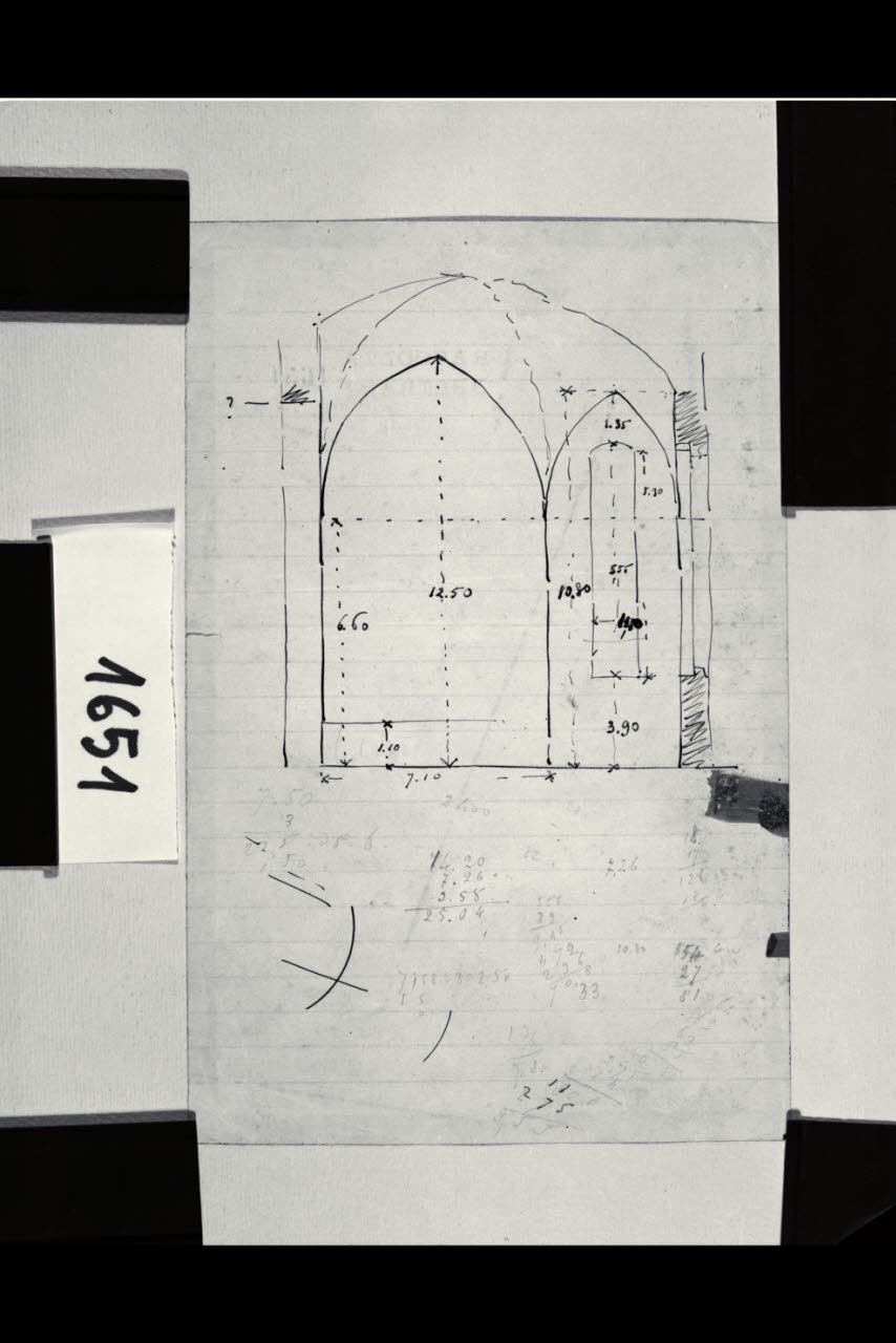 Tavola di rilievo. Sezione di due vani con volta a crociera a sesto acuto. Tavola di rilievo. Sezione di due vani con volta a crociera a sesto acuto