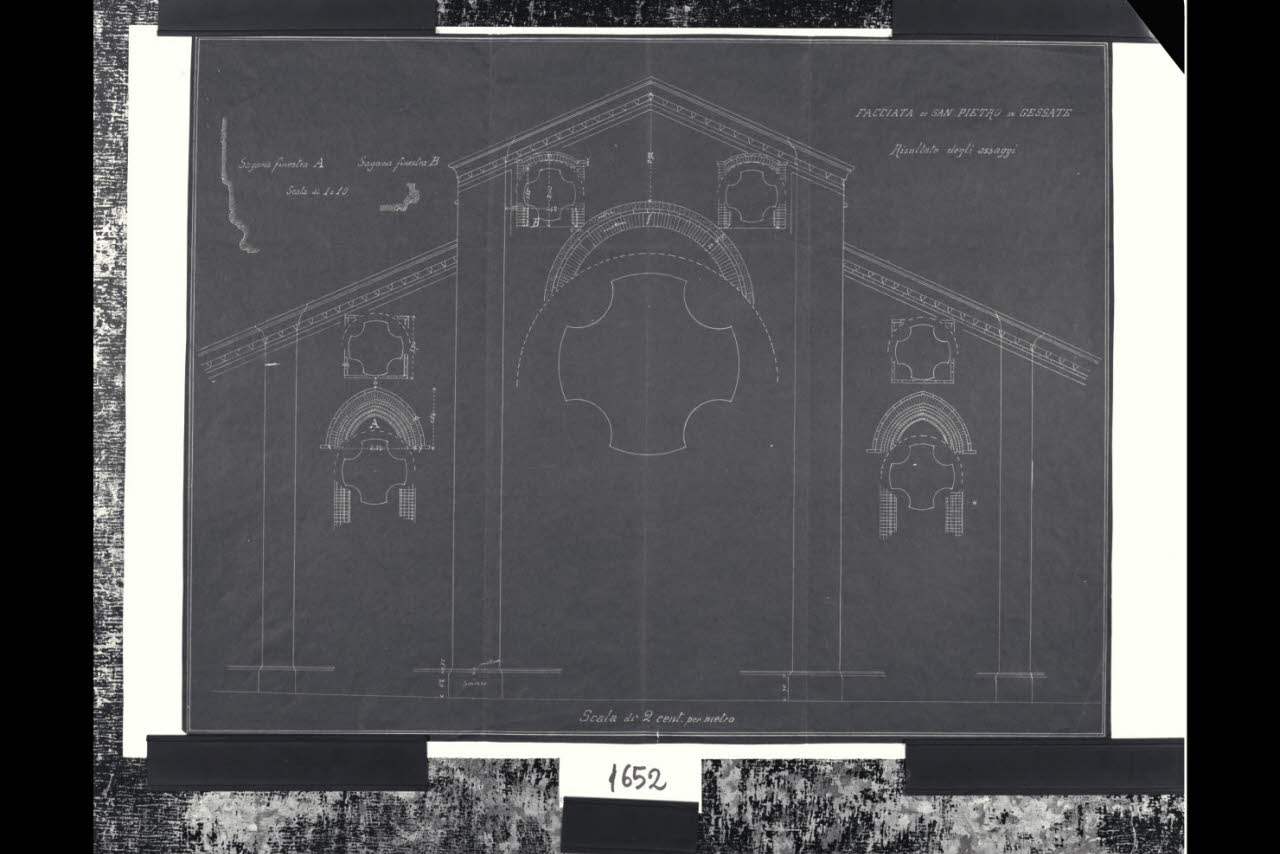 Milano, Chiesa di San Pietro in Gessate. Tavola di rilievo. Risultato degli assaggi (stratrigrafici). Milano, Chiesa di San Pietro in Gessate. Tavola di rilievo. Risultato degli assaggi (stratrigrafici)