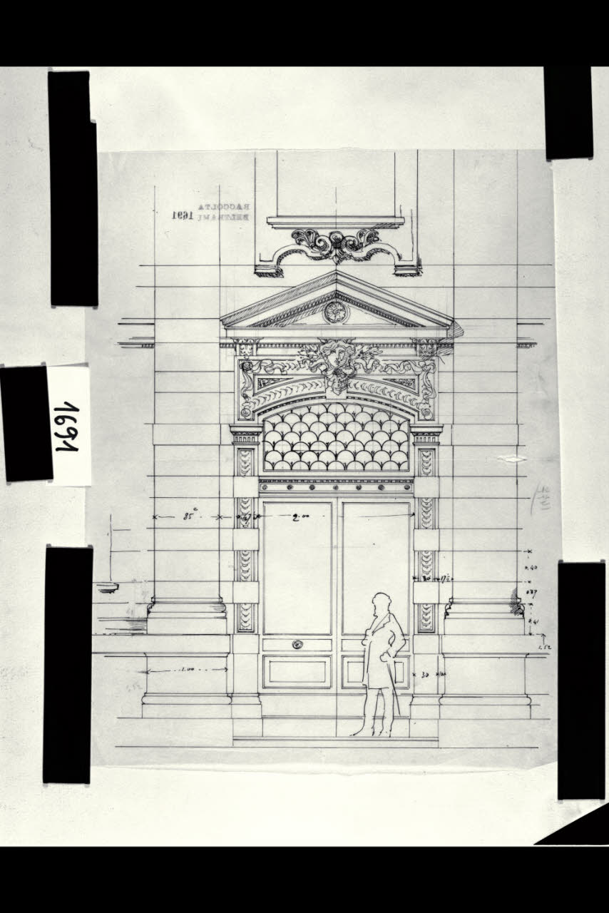 Milano, nuova sede del Corriere della Sera, via Solferino: Prospetto, particolare del portone d'ingresso. Milano, via Solferino, sede del "Corriere della Sera". Prospetto. (Portone di ingresso)