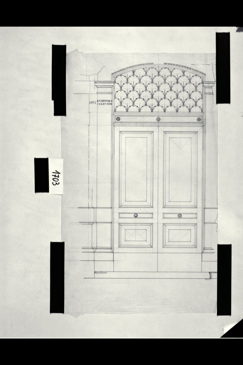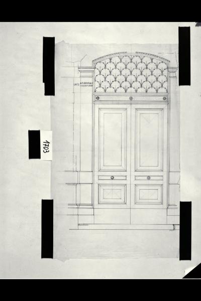 Milano, nuova sede del Corriere della Sera, via Solferino: prospetto di un portoncino. Milano, via Solferino, sede del "Corriere della Sera". Prospetto di un portoncino