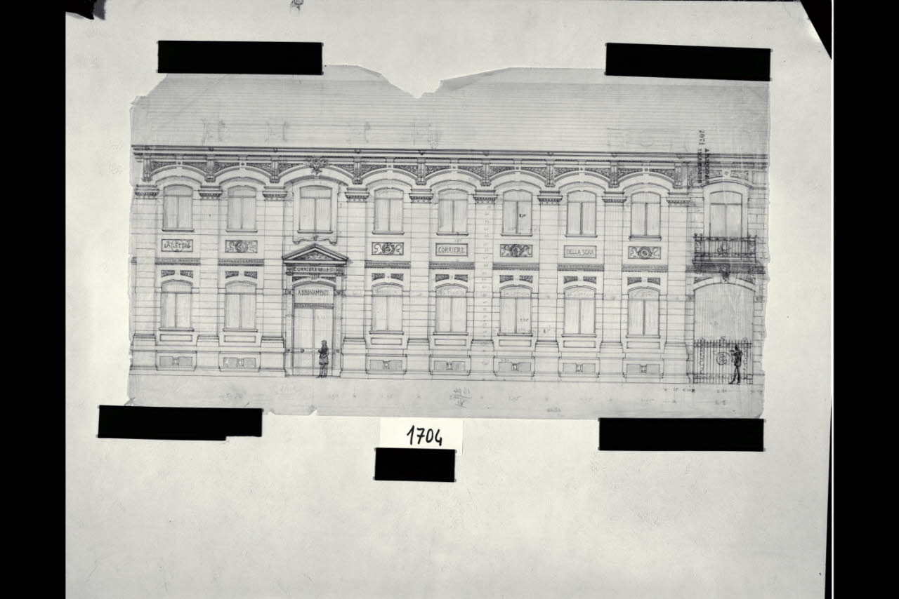 Milano, nuova sede del Corriere della Sera, via Solferino: prospetto e ingresso all'Ufficio Abbonamenti. Milano, via Solferino, sede del "Corriere della Sera". Prospetto ed ingresso all'Ufficio Abbonamenti