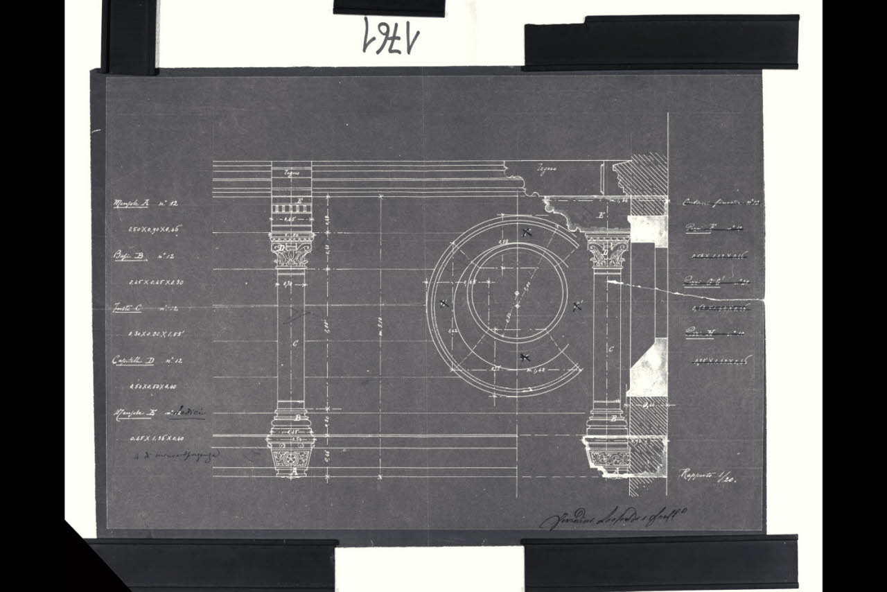 Tempio Israelitico di via Guastalla. Particolare delle decorazione interna. Alzato e sezioni
