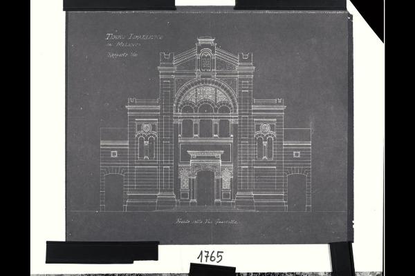 Tempio Israelitico di via della Guastalla. Prospetto sulla via Guastalla. Progetto definitivo. Milano, Tempio Israelitico, via Guastalla. Prospetto sulla via Guastalla. Progetto definitivo