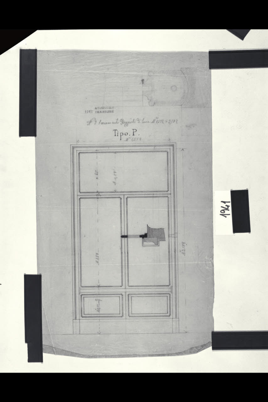 Alzato di una porta a doppia anta con sopraporta. Alzato di una porta a doppia anta con sopraporta