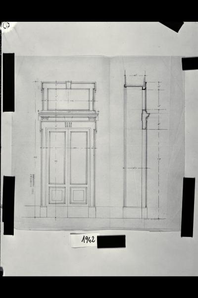 Alzato e sezione di una porta a doppia anta con sopraporta. Alzato e sezione di una porta a doppia anta con sopraporta