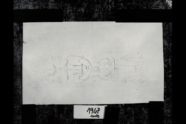 Schizzo per una fascia decorata a motivi di vasi ed intrecci vegetali. Schizzo per una fascia decorata a motivi di vasi ed intrecci vegetali