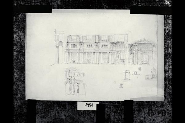 Sezione di un tempio classico con pronao antistante. Sezione di un tempio classico con pronao antistante
