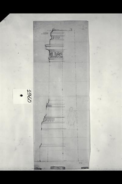 Alzato di un monumento con fregio a piccole ghirlande. Alzato di un monumento con fregio a piccole ghirlande