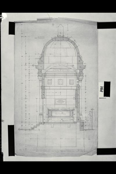 Milano, Cimitero Monumentale. Cappella Rizzi Sacchetti (Riparto IX, n. 542). Sezione longitudinale. Milano, Cimitero Monumentale. Cappella Rizzi Sacchetti (Riparto IX, n. 542). Sezione longitudinale