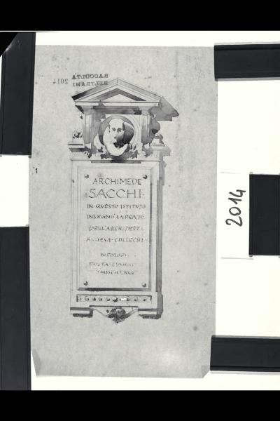 Milano (?), Lapide commemorativa ad Archimede Sacchi. Vista frontale della lapide. Milano (?), Lapide commemorativa ad Archimede Sacchi. Vista frontale della lapide