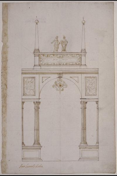 Apparati effimeri per Margherita d'Austria: arco della casa d'Austria, corpo laterale destro (prospetto del fronte)