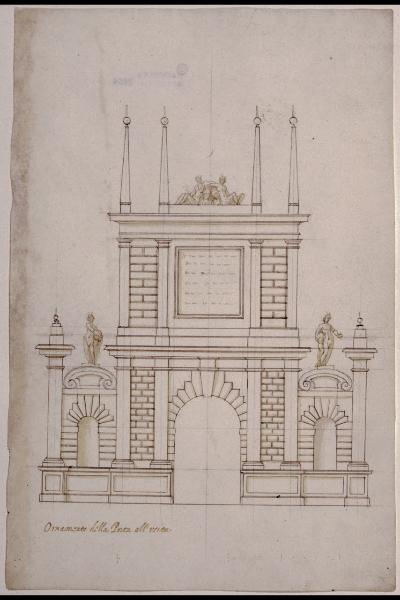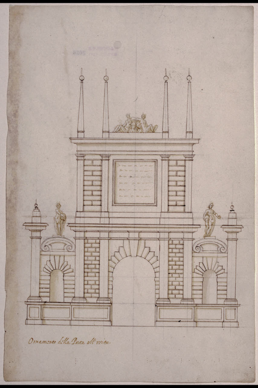 Apparati effimeri per Margherita d'Austria: arco alla porta di San Luca, prospetto