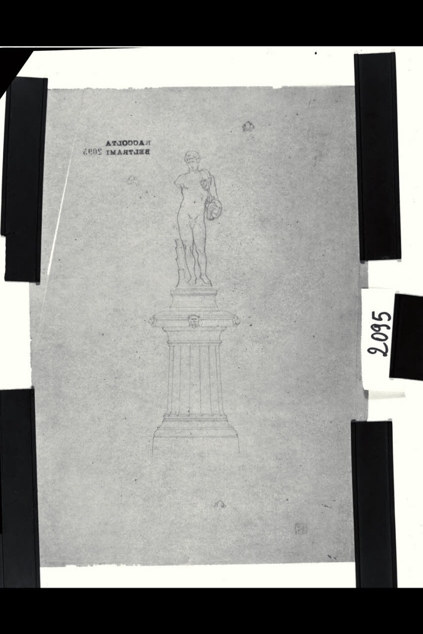 Disegno in alzato di statua di una figura maschile su piedistallo. Disegno in alzato di statua di una figura maschile su piedistallo