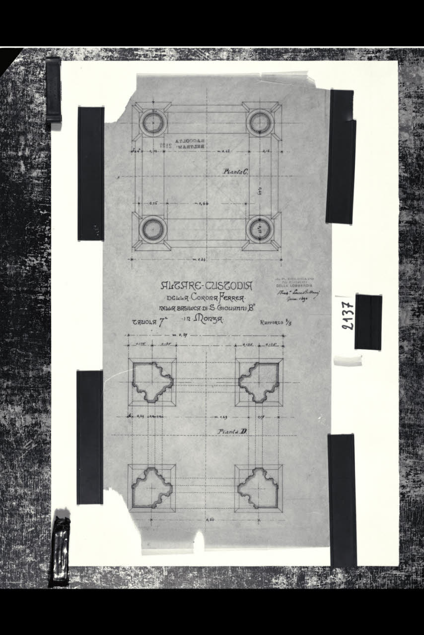 Monza, Basilica di San Giovanni. Cappella della Regina Teodolinda. Piante (a diverse quote) dell'altare custodia. Monza, Basilica di San Giovanni. Cappella della Regina Teodolinda. Piante (a diverse quote) dell'altare custodia