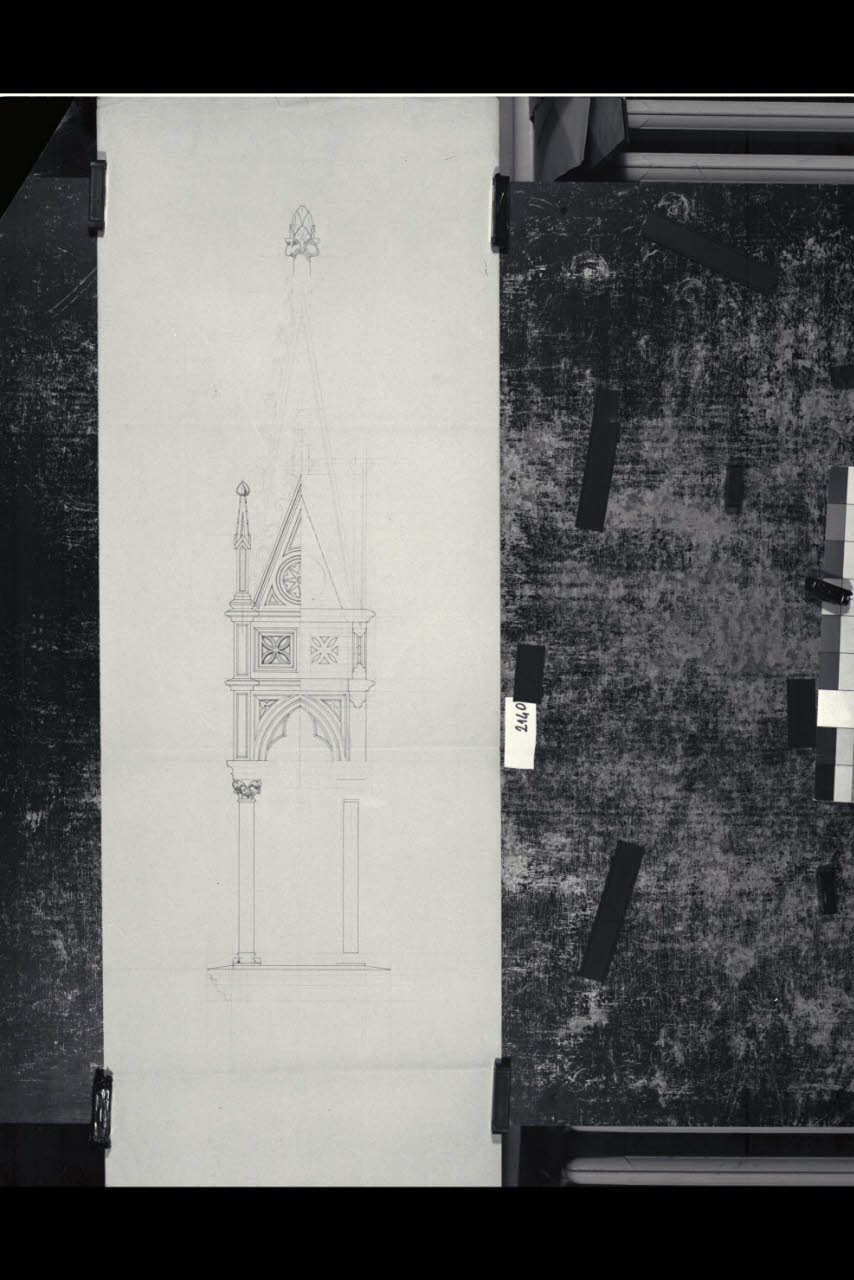 Monza, Basilica di San Giovanni. Cappella della Regina Teodolinda. Prospetto della cuspide per l'altare custodia. Monza, Basilica di San Giovanni. Cappella della Regina Teodolinda. Prospetto della cuspide per l'altare custodia