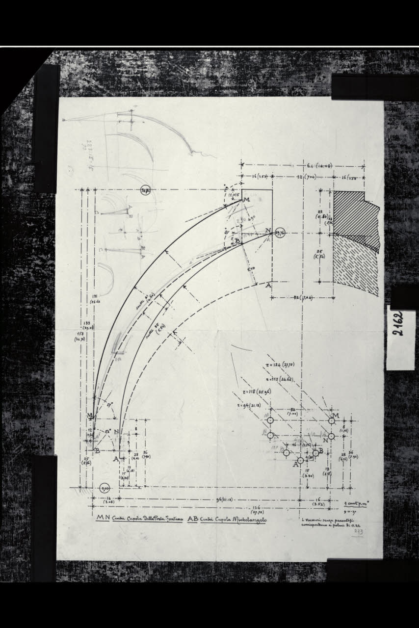 Roma, Cupole di San Pietro. Studio e confronto delle curvature (Della Porta-Fontana, Michelangelo). Roma, Cupole di San Pietro. Studio e confronto delle curvature (Della Porta-Fontana, Michelangelo)