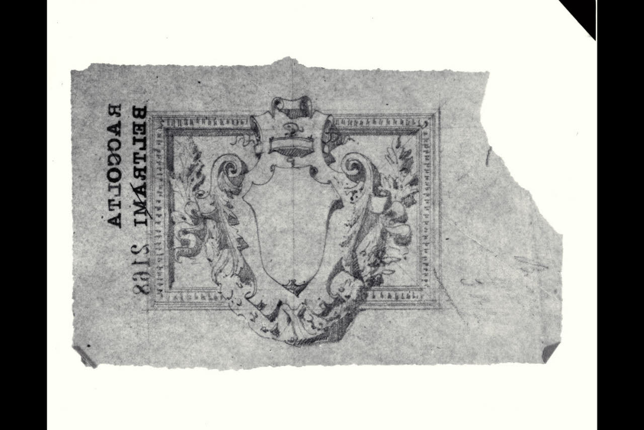 Schizzo di una lapide con sovrapposto stemma. Schizzo di una lapide con sovrapposto stemma