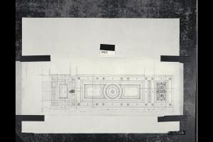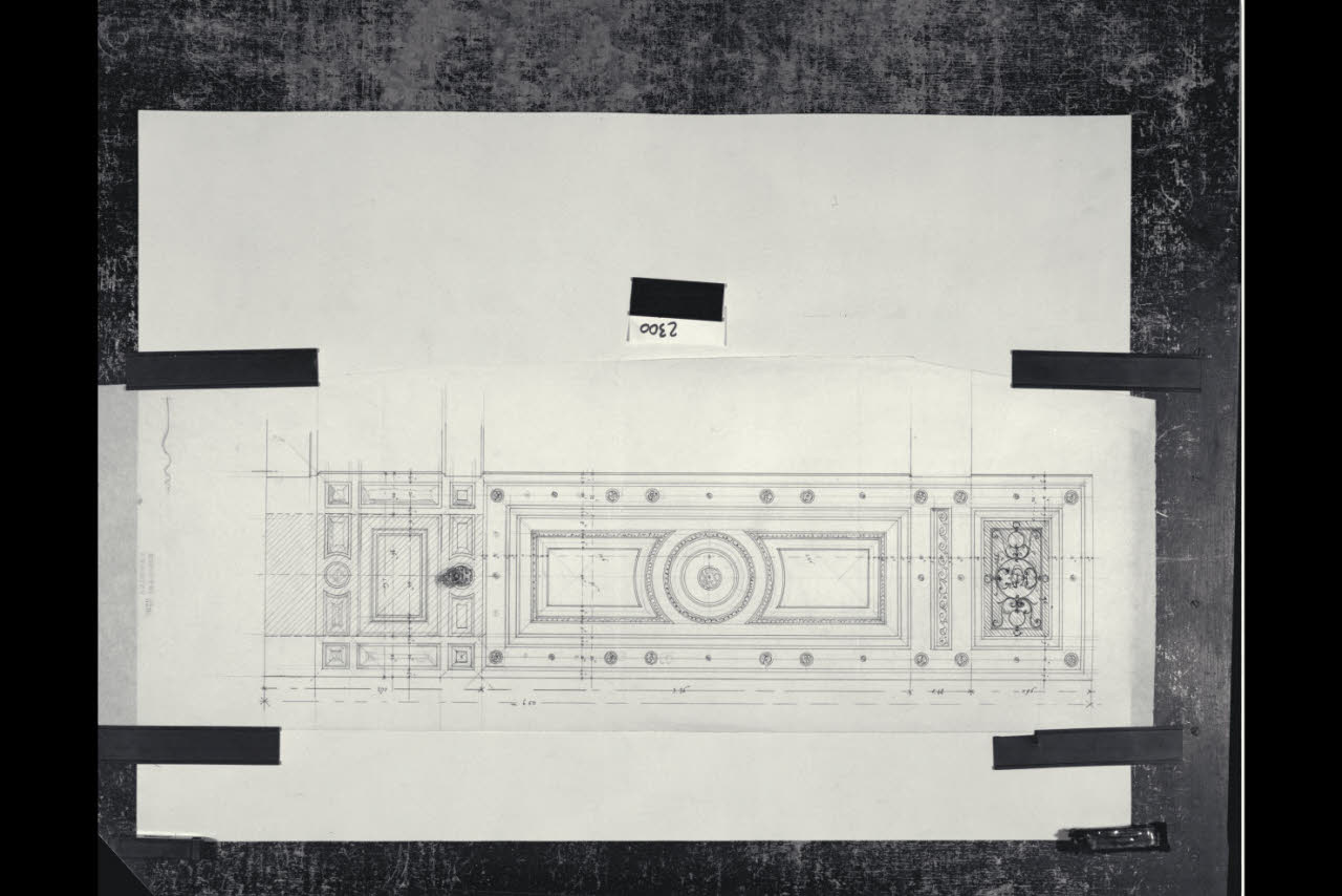 Disegno di una partitura architettonica per soffitto o zoccolatura (?) suddiviso in tre campi. Disegno di una partitura architettonica per soffitto o zoccolatura (?) suddiviso in tre campi