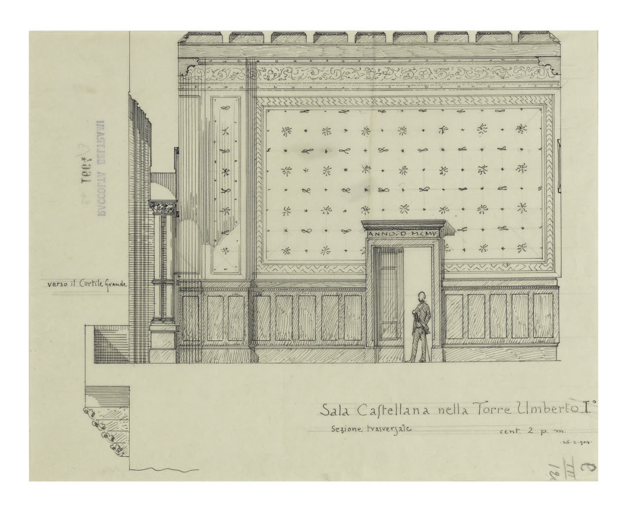 Milano, Castello Sforzesco: Sezione trasversale della Sala Castellana nella torre Umberto I