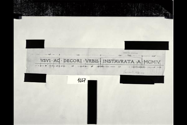 Dettaglio di iscrizione per il vestibolo della Torre Umberto I del Castello Sforzesco di Milano. Dettaglio di iscrizione per il vestibolo della Torre Umberto I del Castello Sforzesco di Milano