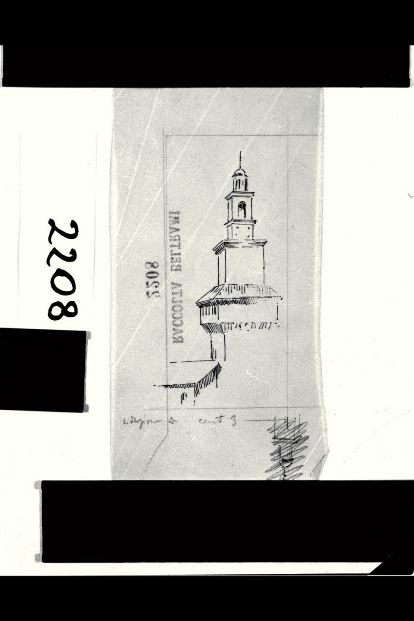 Schizzo prospettico della torre del castello di Vigevano. Schizzo prospettico della torre del castello di Vigevano