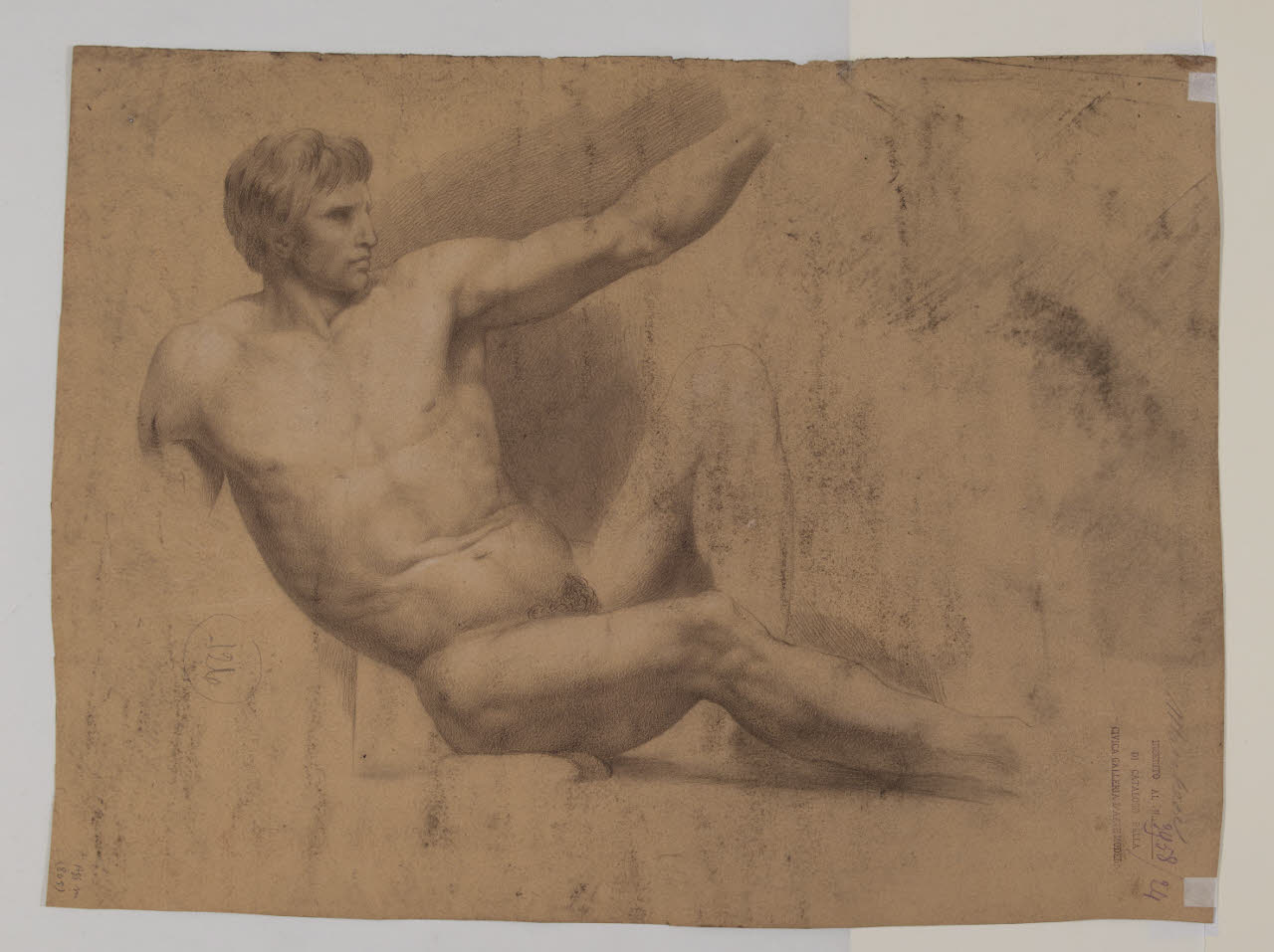 carta marroncina/ carboncino/ gessetto bianco