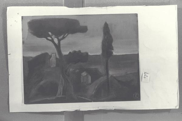 Paesaggio con pino marittimo e cipresso. Paesaggio con pino marittimo e cipresso