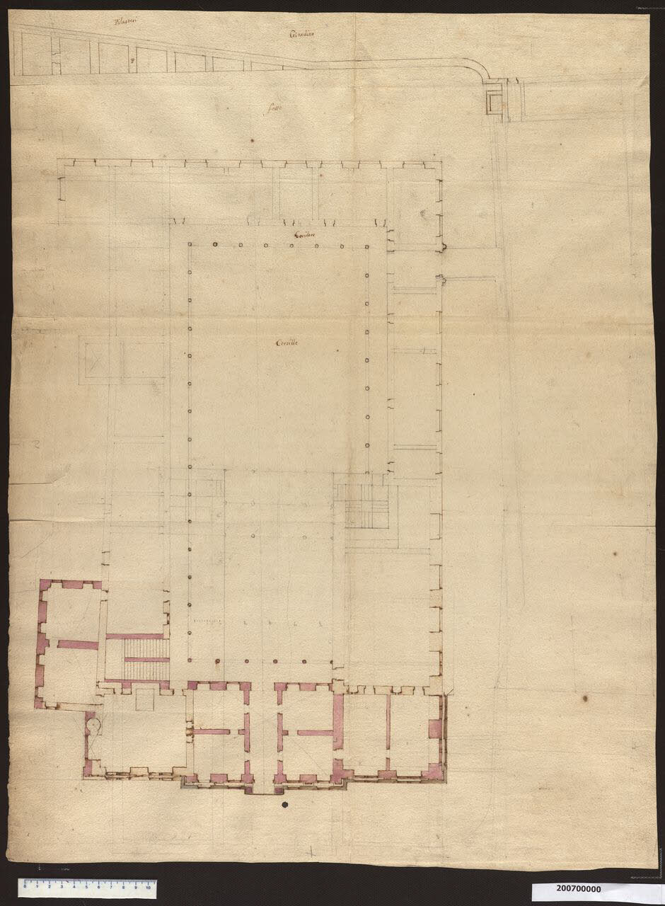 Pianta del piano terreno, lato est, del castello di Austerlitz. Pianta del piano terreno, lato est, del castello di Austerlitz