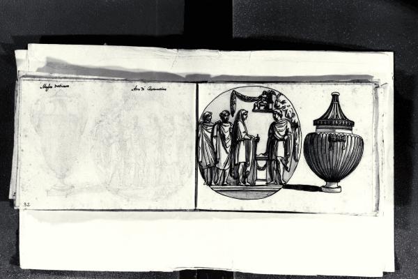 Rilievo con Sacrificio a Ercole (medaglione del lato nord dell'Arco di Costantino) e urna baccellata (collezione Musei Vaticani)
