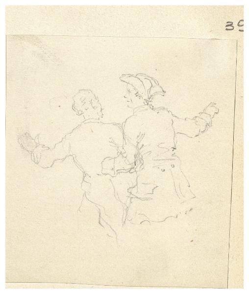 Figure maschili di spalle, a braccetto