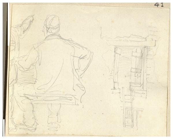 Uomo di spalle seduto e schizzo di finestra