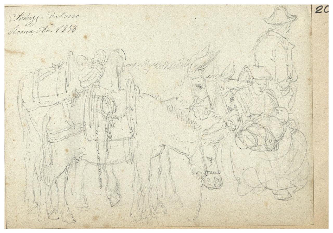 Somari e popolani in sosta (Schizzo dal vero Roma 1858)
